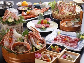 Choose this! Best recommended plan! -Serving almost two crabs per person. -Fresh crab sashimi figuring like flower. -Two kinds of flavors in one hot pot! Crab and Tajima beef Shabu shabu. -Not only crab and beef, also abalone. Breakfast: -Local branded eggs in Tanto & Olive juice & soy sauce for 「Tamago Kake Gohan (raw egg on rice)」&『Tamago Kake Gohan』used our selected rice cooked in a pot. -A private bath is available for free for 40 minutes. 【A natural stone bath ( with apples floating), a natural stone bath with tatami mats ( with oranges and limes floating), Shigaraki ware earthen bathtub(with roses floating)】on a first-come, first-served basis. When you arrive late, there is a case that you cannot reserve at your desired time. You can reserve in advance (extra charge). Please call us if you desire. Enjoy our large public bath and open-air bath, and you can also enjoy seven public bath in the town. (Free admission tickets are included.) |
