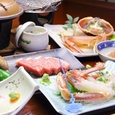 Delight in Winter's finest Snow Crab direct from the local port and savor our pride Tajima Beef. Savor both local specialty in Kinosaki's relaxing, traditional setting. Dinner offers one whole crab, served grilled and as sashimi, and a Tajima beef steak (100g).