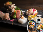 新鮮な【海の幸】を味わう、四季折々の旬食材を使用したスペシャルコース『彩』。【全八品】を心を込めてご用意いたします。メインにはその時季、最良の味わいの【刺身】を。ご朝食はカフェ『UTSUROI』にて、トーストが自慢の洋食モーニングと自家焙煎の珈琲をどうぞ。/城崎温泉の外湯巡り券付き