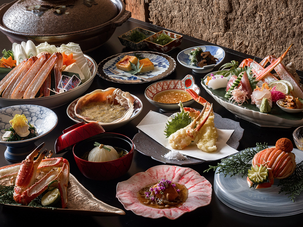 <早期割60>【タグ付・活松葉蟹1杯】ブランド地蟹を刺・焼・茹で嗜む、究極のフルコース『極』|カフェ朝食
