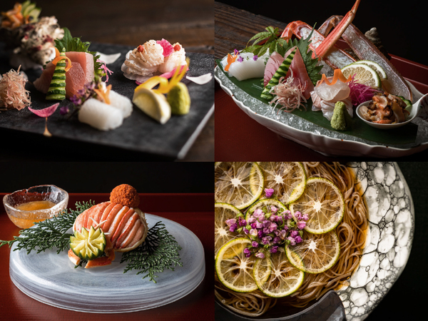![]() 【本館】城崎の旬な山海の幸を、目と舌で愉しむ「四季替わりのコース料理」が自慢。(画像は一例) |